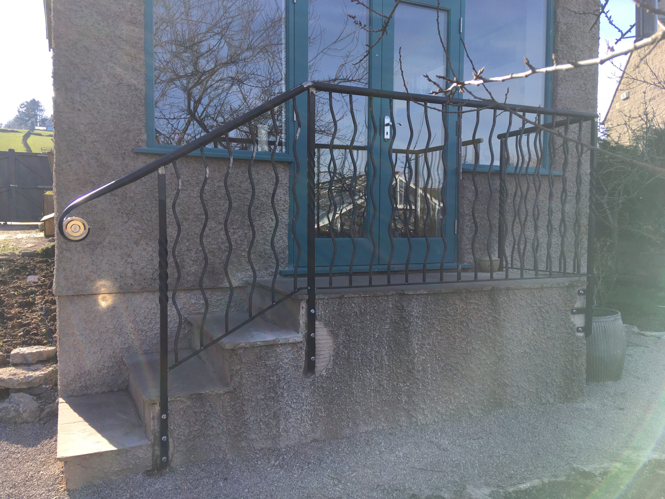 Railings commissioned for an extension to an Art Deco era house. The installation was given extra bling with a stainless steel and brass machined handrail feature.
